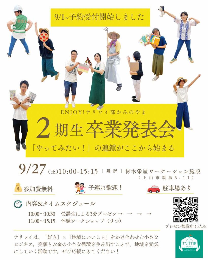 ”ENJOY!ナリワイ部かみのやま”による”2期生卒業発表会”が開催されます!